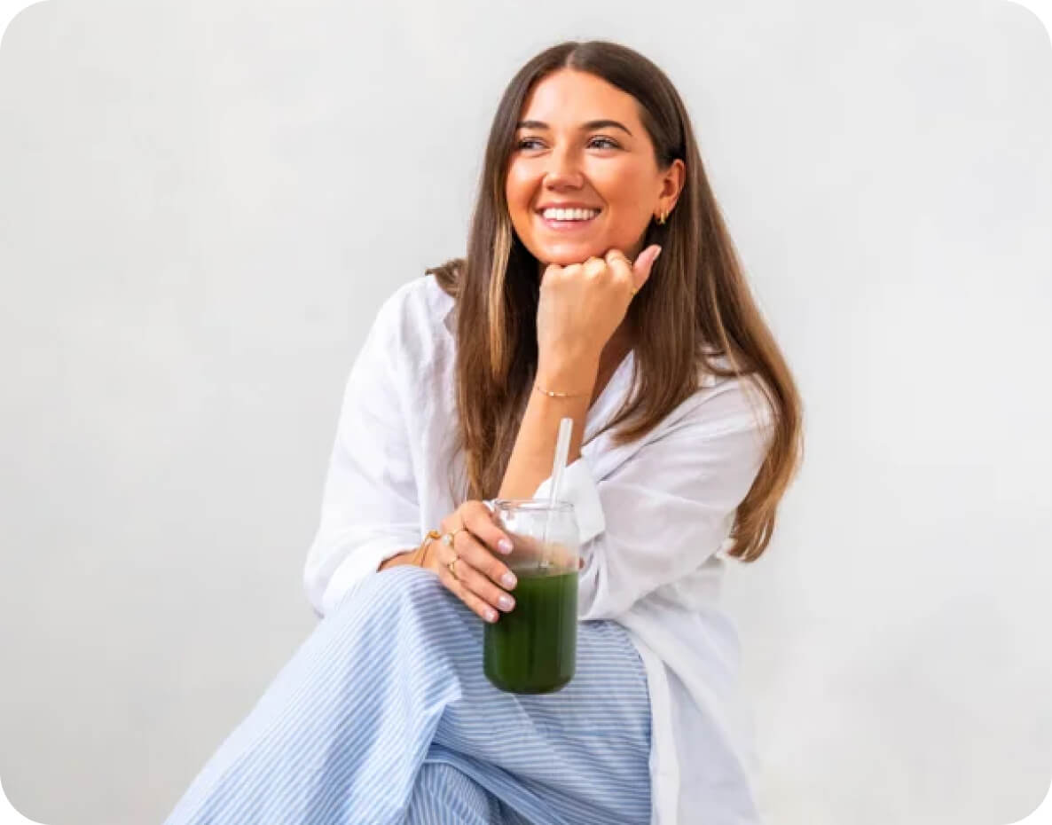 We love to enjoy our greens powder alongside a nutritious breakfast in the morning, but you can also enjoy it as a midday boost! Simply mix a heaped teaspoon (5g) into a glass of cold water, with honey or lemon or add it to your smoothie.